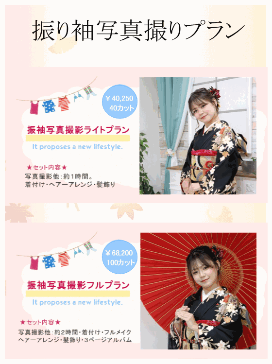 ■フォト成人式(振袖)セット¥107,800。写真だけは、残したい貴方の記念日