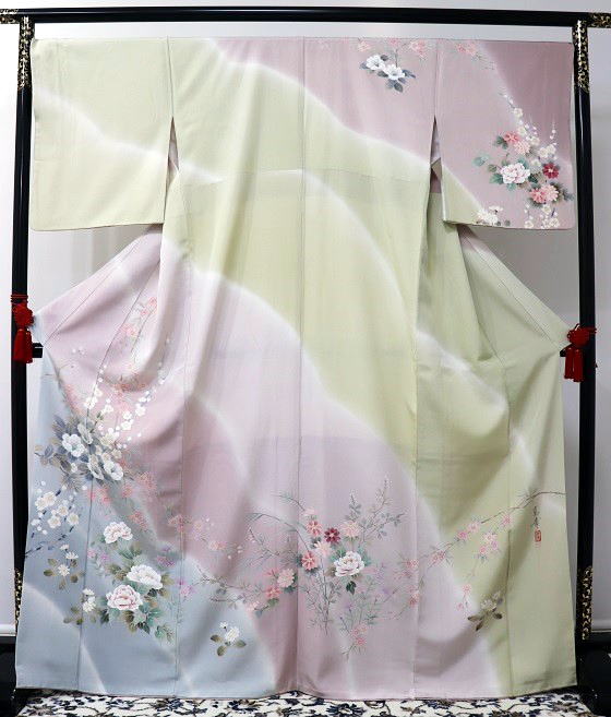 ◎手描き染め分け訪問着・hr-041:糸目友禅と違い、日本画のように手描きで染め付けた逸品です。